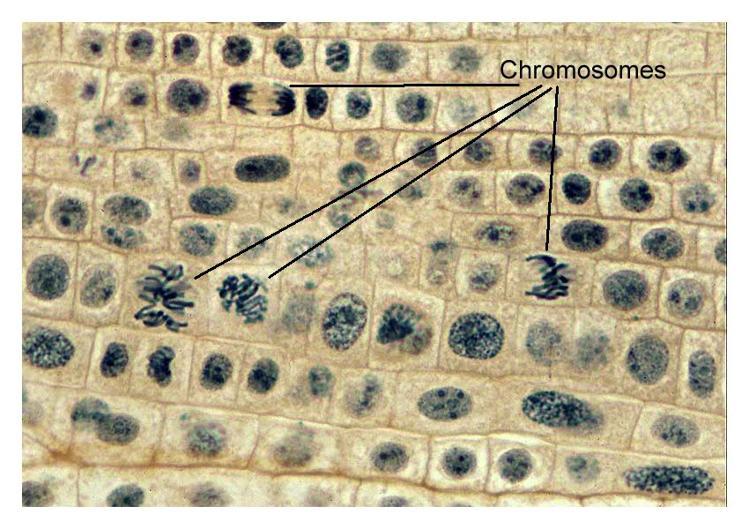 On réalise des coupes transversales dans des racines de bulbes (ail, oignon) , qui sont des organes dans lesquels les cellules se divisent beaucoup.