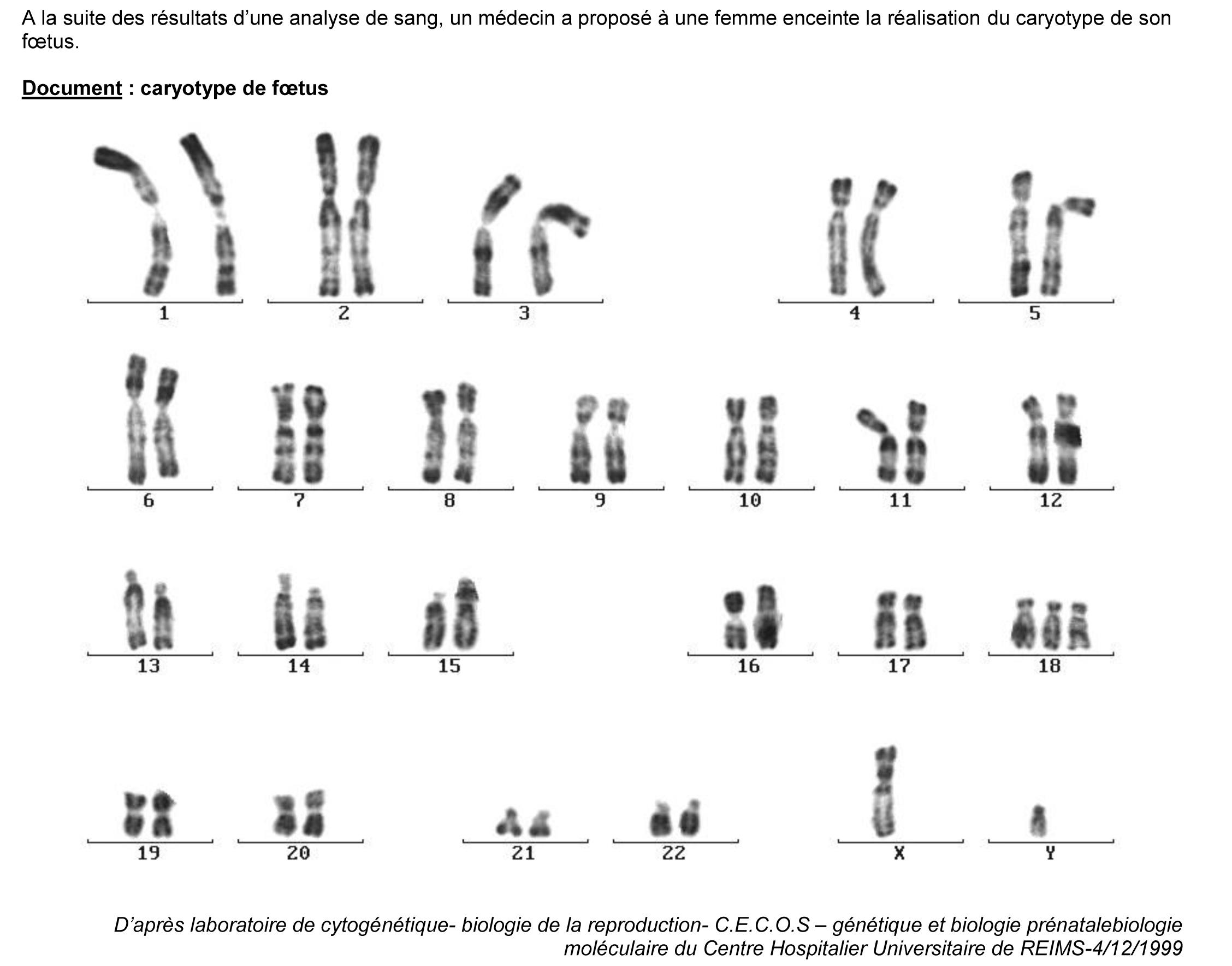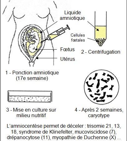 L'amniocentèse : comment détecter une anomalie des chromosomes, donc du caryotype, chez un foetus avant la naissance.